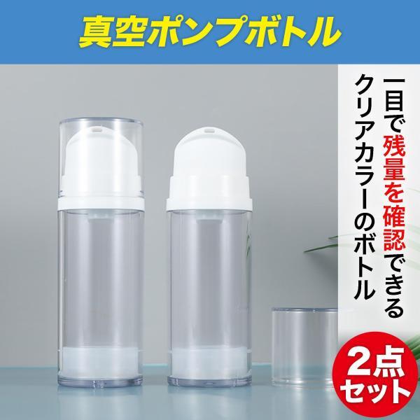 乳液や化粧水、クレンジングクリームなどの化粧品だけでなく、シャンプーやリンスなどの詰め替えにも役立つ真空ポンプボトルです。クリアカラーのボトルを採用しているので、一目で残量を確認できます。