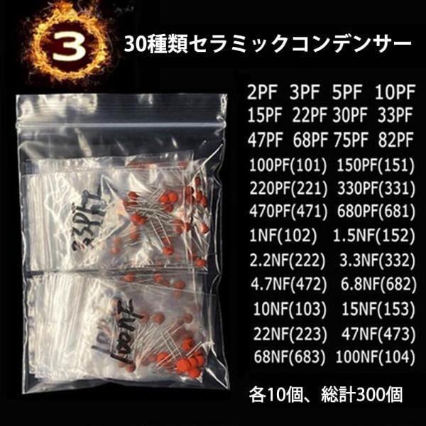 S9012 S9013 S9014 S9015 S9018 C945 S8050 S8550 A733 A1015 C1815 2N222 2N3904 2N3906 2N5401 2N5551 A42 A92 (全18種類、各10個、総計180個) 【セラミックコンデンサー】2P 3P 5P 10P 15P 22P 30P 33P 47P 68P 75P 82P 101(100P) 151(150P) 221(220P) 331(330P) 471(470P) 681(680P) 102(1NF) 152(1.5NF) 222(2.2NF) 332(3.3NF) 472(4.7NF) 682(6.8NF) 103(10NF) 153(15NF) 223(22NF) 473(47NF) 683(68NF) 104(100NF)(全30種類、各10個、総計300個)